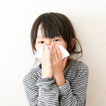 食生活や環境の変化などの様々な要因から、アレルギー疾患を抱えるこどもたちが増えています。乳児期には湿疹やアトピー性皮膚などの皮膚症状や下痢、腹痛などの消化器症状を認め、幼児期になると喘鳴や、気管支喘息発作を発症。学童期以降成人にかけてアレルギー性鼻炎や結膜炎も伴うようになることがあります。